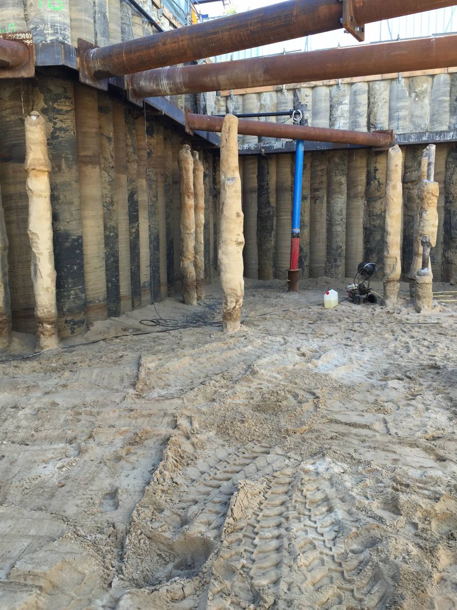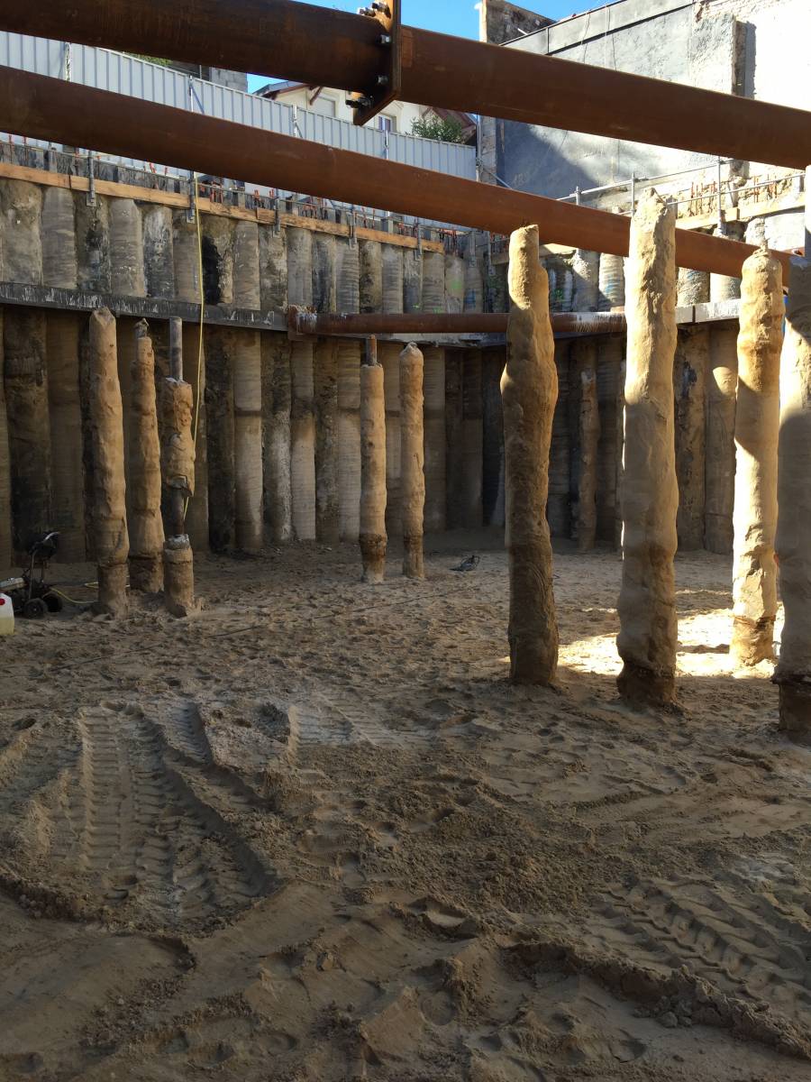Au préalable une entreprise de fondations spéciales a réalisé une paroi de soutènement en pieux sur les pourtours du futur bâtiment.